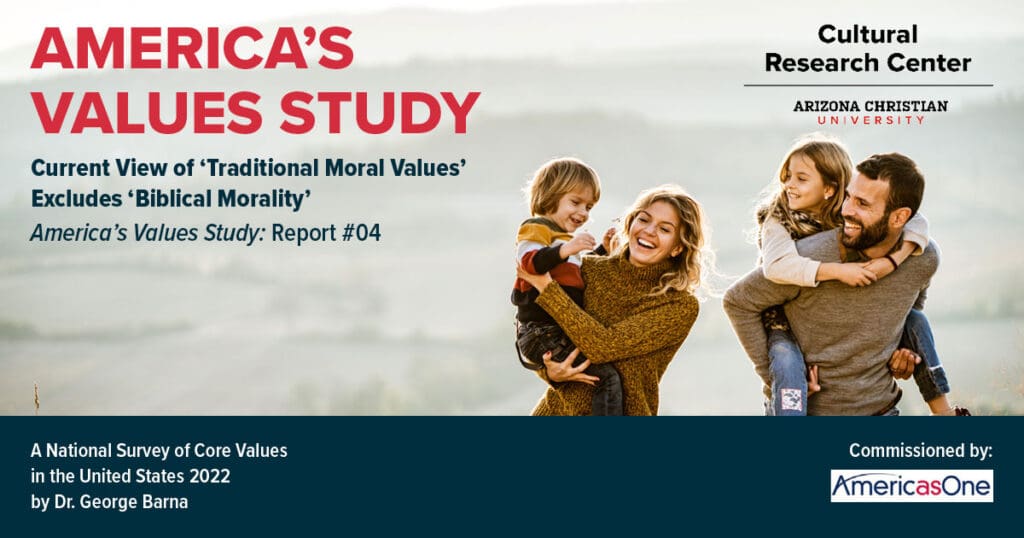 The full report by George Barna, America’s Values Study: Report #04: “Current View of ‘Traditional Moral Values’ Excludes ‘Biblical Morality'” is available here.